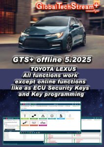 GTS+ 2025 Offline (v5.2025) is the latest diagnostic software for Toyota & Lexus vehicles, supporting models up to May 2025. Perform full offline diagnostics, read/clear DTCs, customize vehicle options, and run active tests using J2534 interfaces. No internet or dealer login required. Ideal for workshops and auto technicians.